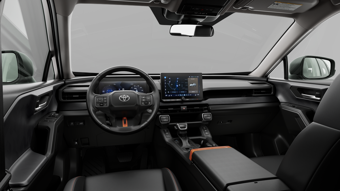 - Center console with covered storage compartment, reversible armrest/console tray, two cup holders, drive mode (trail, snow, normal and EV mode), auto LSD/VSC, Electric Parking Brake (EPB) and automatic Brake Hold controls, and front storage tray