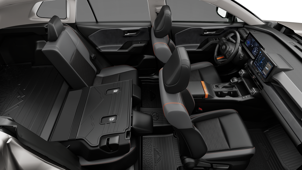 - 60/40 split reclining fold-flat rear seat with center armrest and cup holders